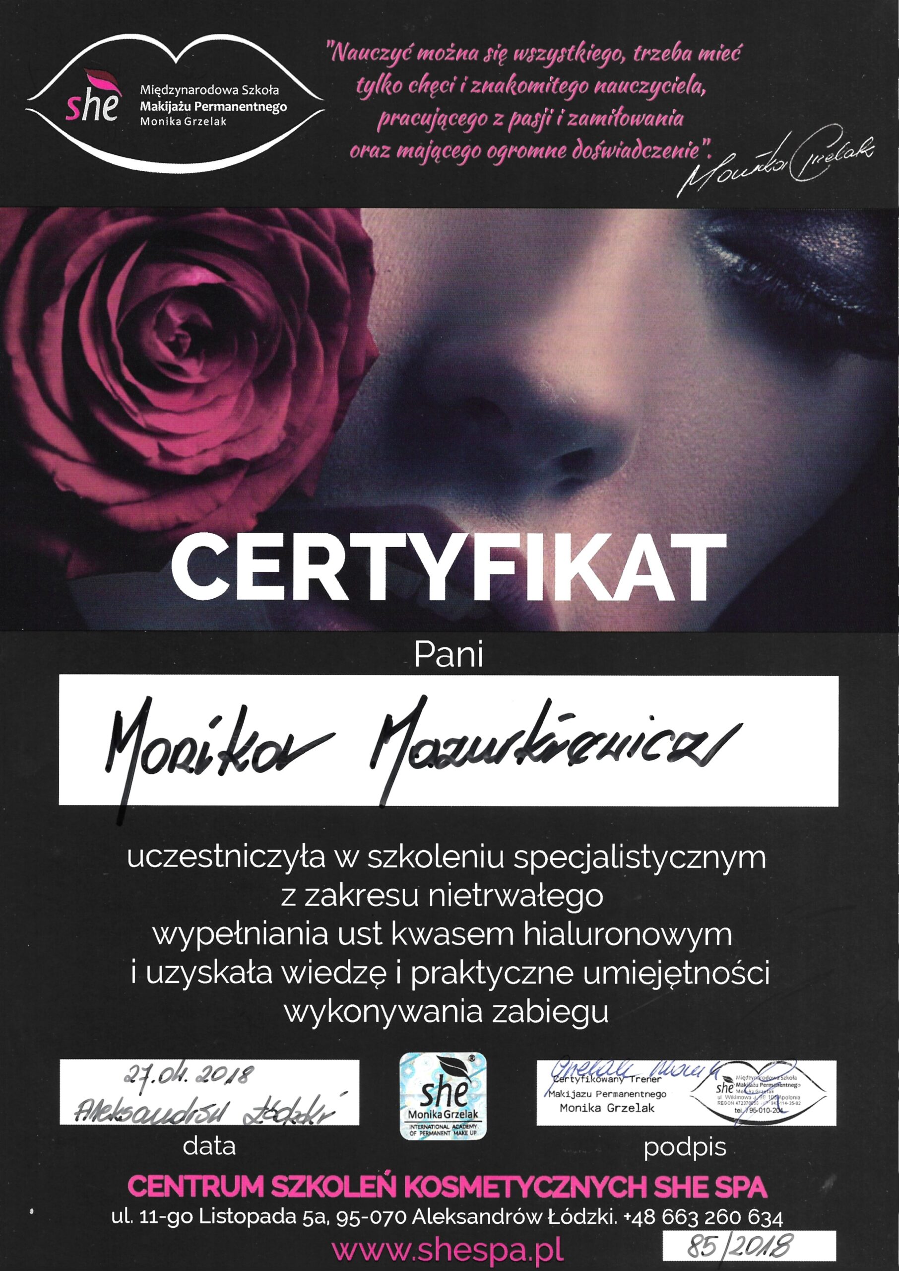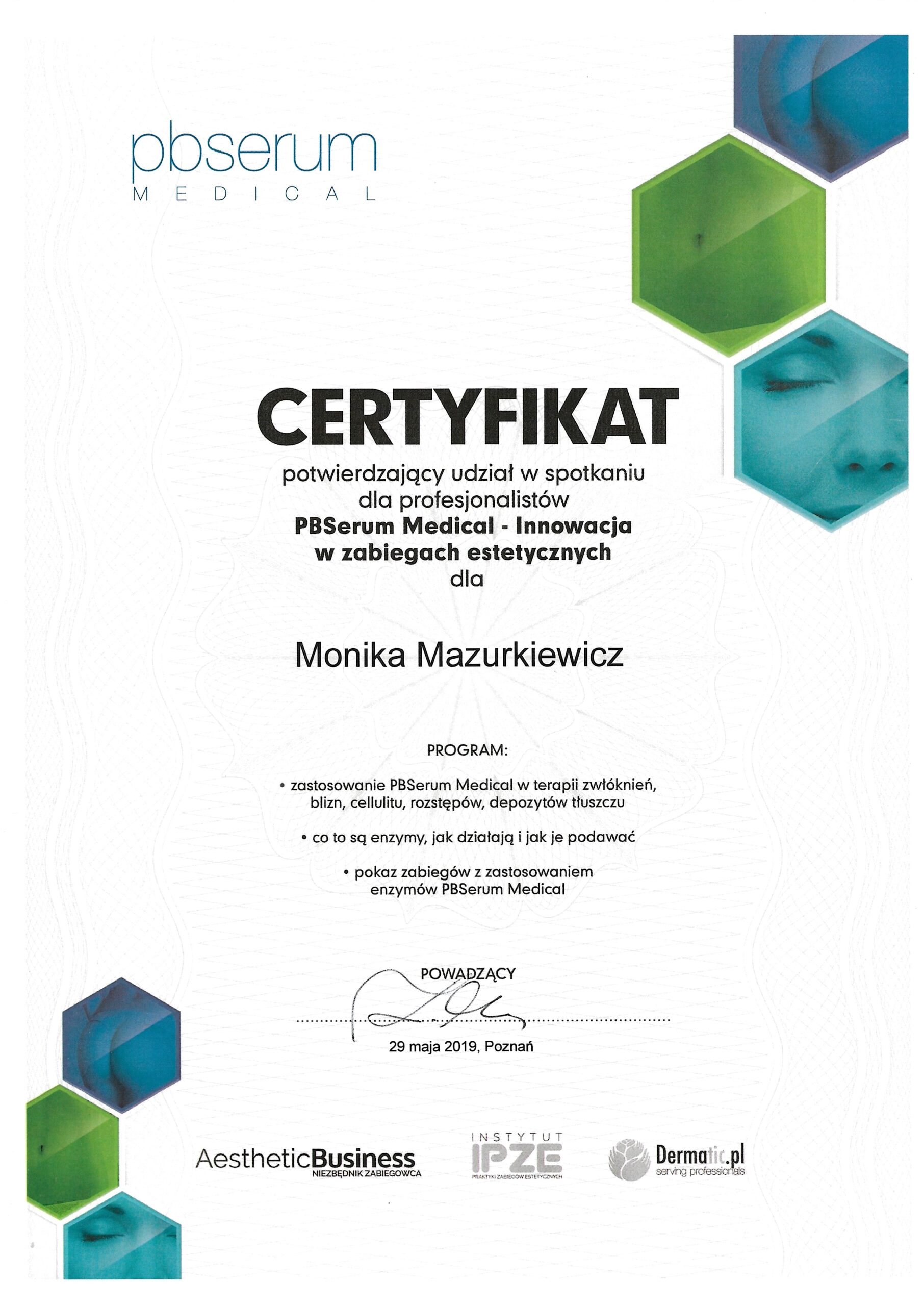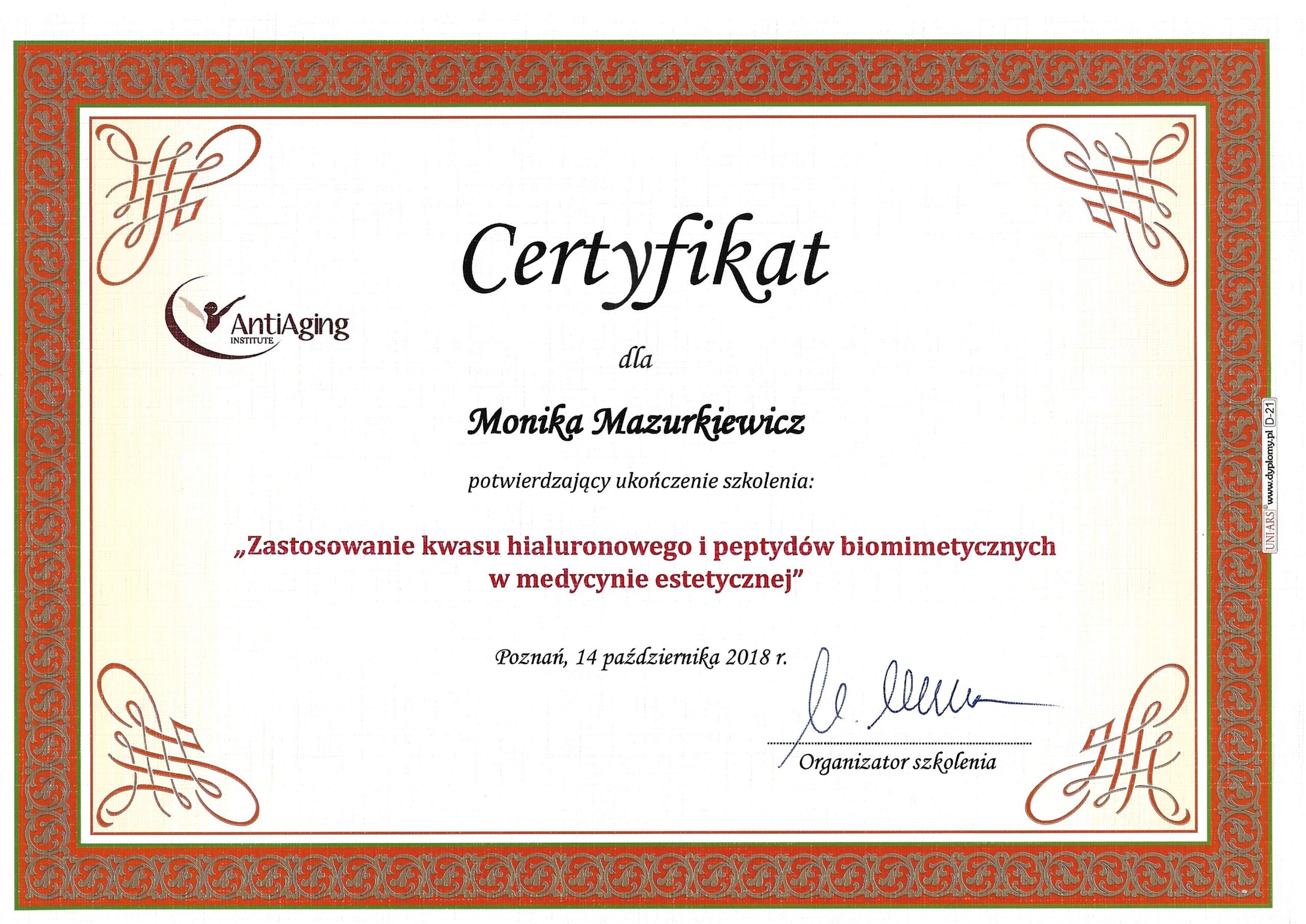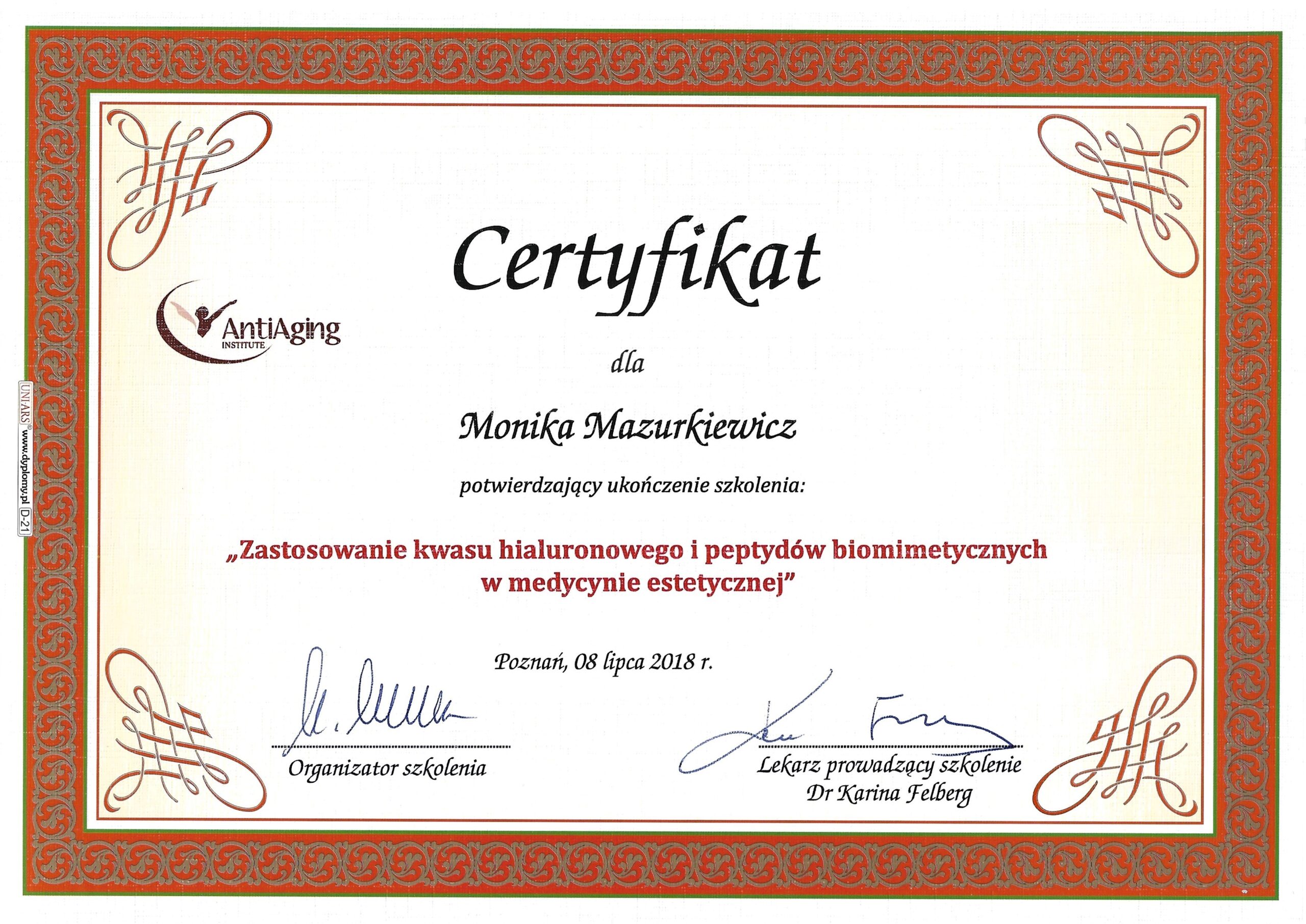 Medycyna Estetyczna certyfikaty